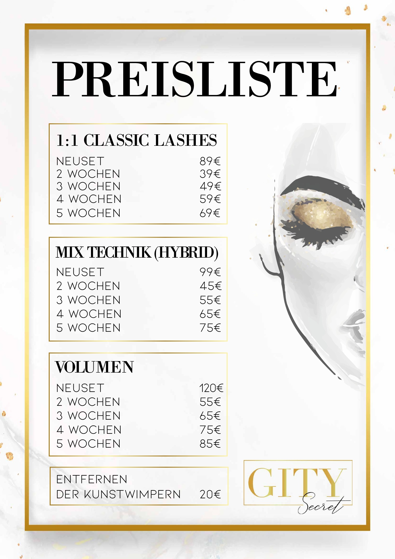 Preisliste : Wimpern